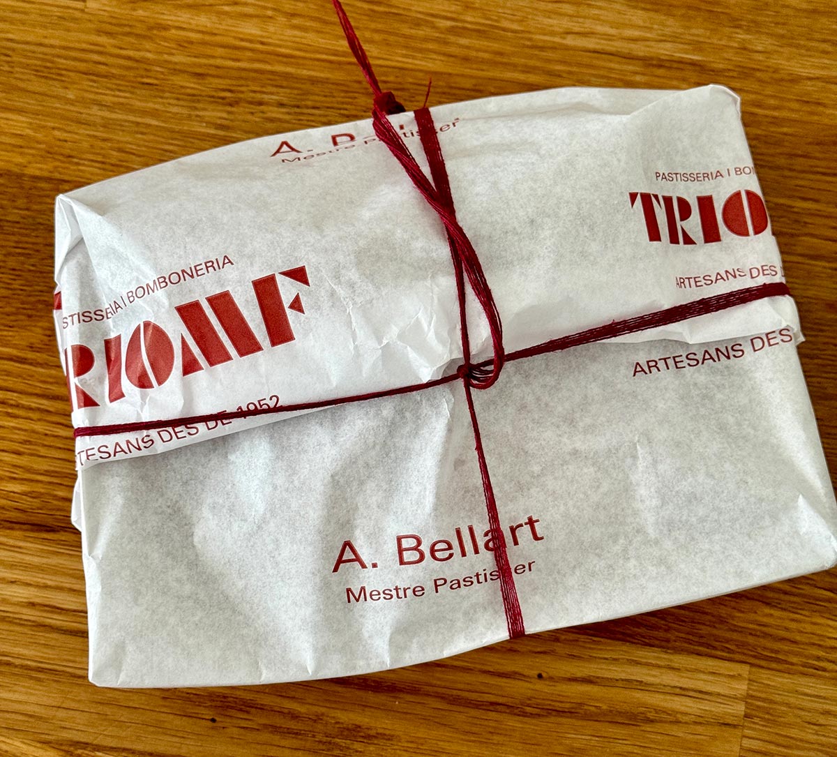 Que los dos xuixos llegaran empaquetados como mandan los cánones de las buenas pastelerías del mundo ya fue una buena señal. A veces la fórmula falla, pero como hijo de pastelera que ha crecido viendo envolver y anudar con cuerda paquetes de pasteles, tiendo a pensar que si se cuida este punto, es que el contenido es bueno.