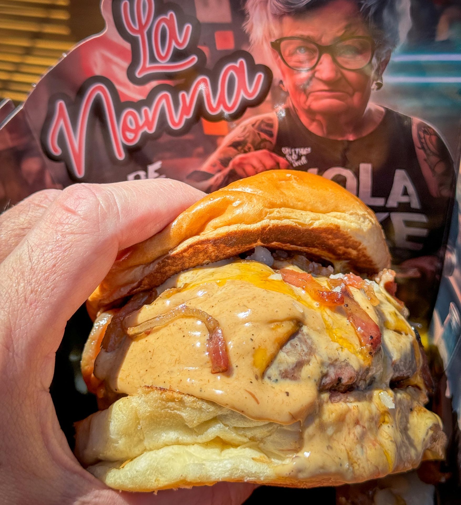 Y los de Alex Viñal -pasó por MasterChef y ahora se ha especializado en lo que llama street food de autor- cuentan con dos bazas en su hamburguesa La Nonna: es la única que se ahuma en horno kamado y, además, juega con sabores e ingredientes de una salsa carbonara.